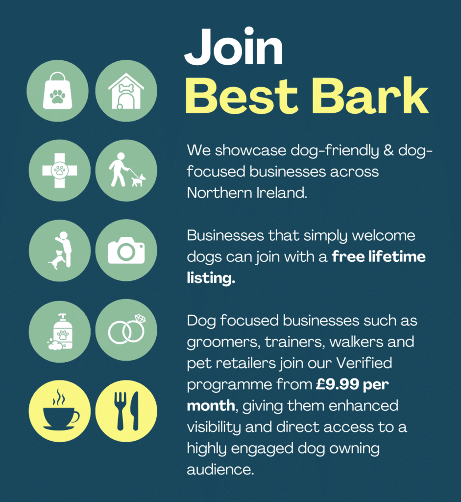 Join NI’s leading dog-friendly / dog-serving business directory and get discovered by thousands of pet parents looking for businesses like yours!