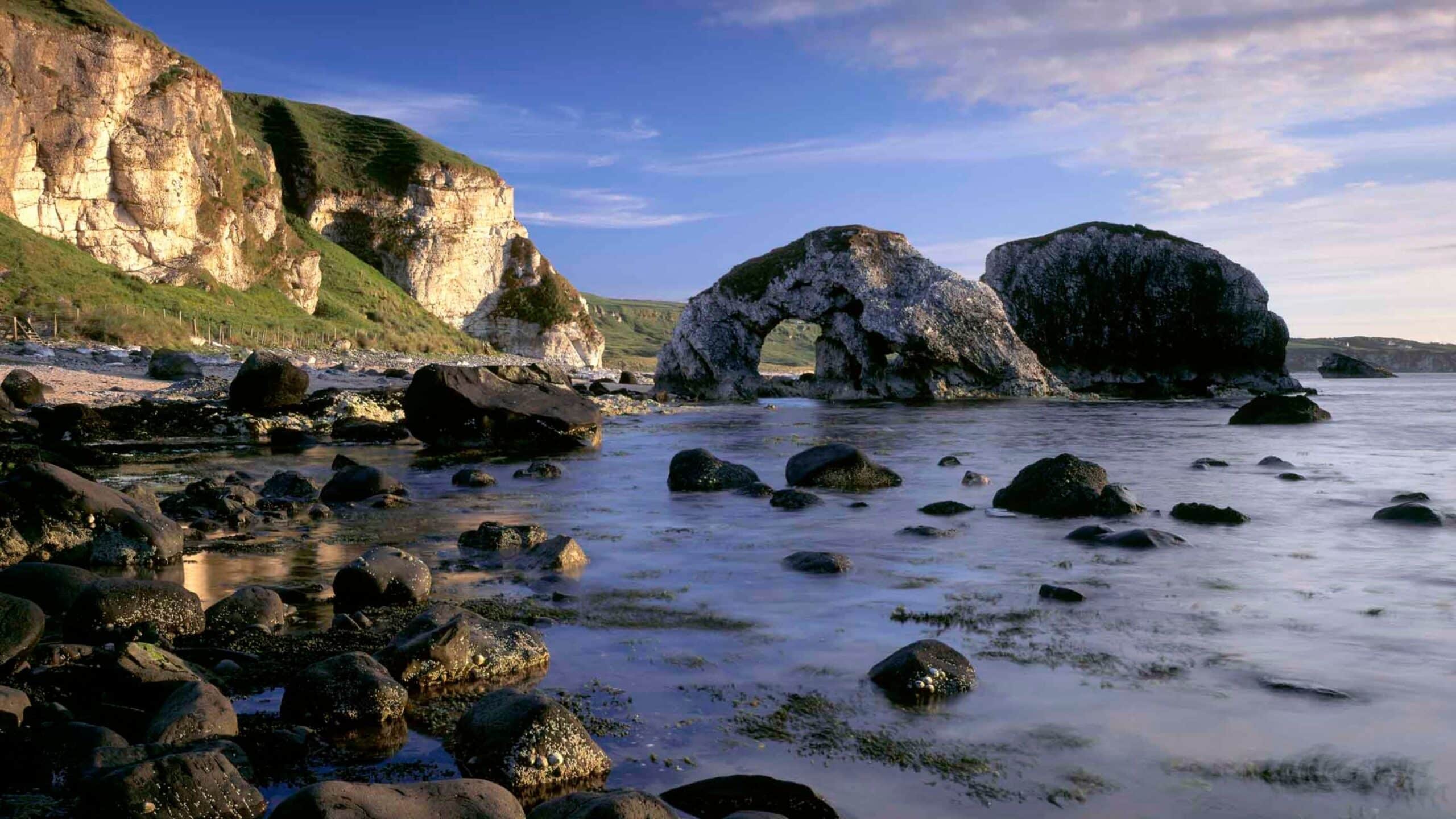 White Park Bay is a stunning, secluded beach on Northern Ireland's North Antrim coast, forming a white arc between two headlands.