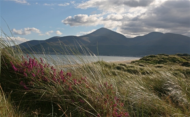 Dundrum Bay offers breath-taking views of the Mourne Mountains and the Irish Sea, providing a picturesque backdrop for visitors.