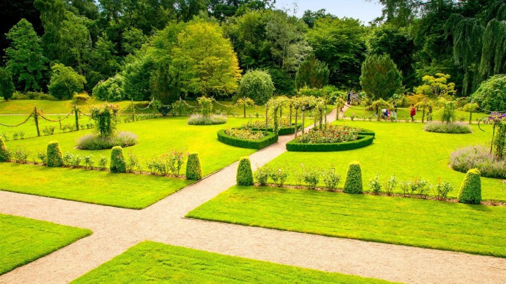 Dogs are required to be on short leads in the walled garden and around farm animals in Florence Court's wider estate.