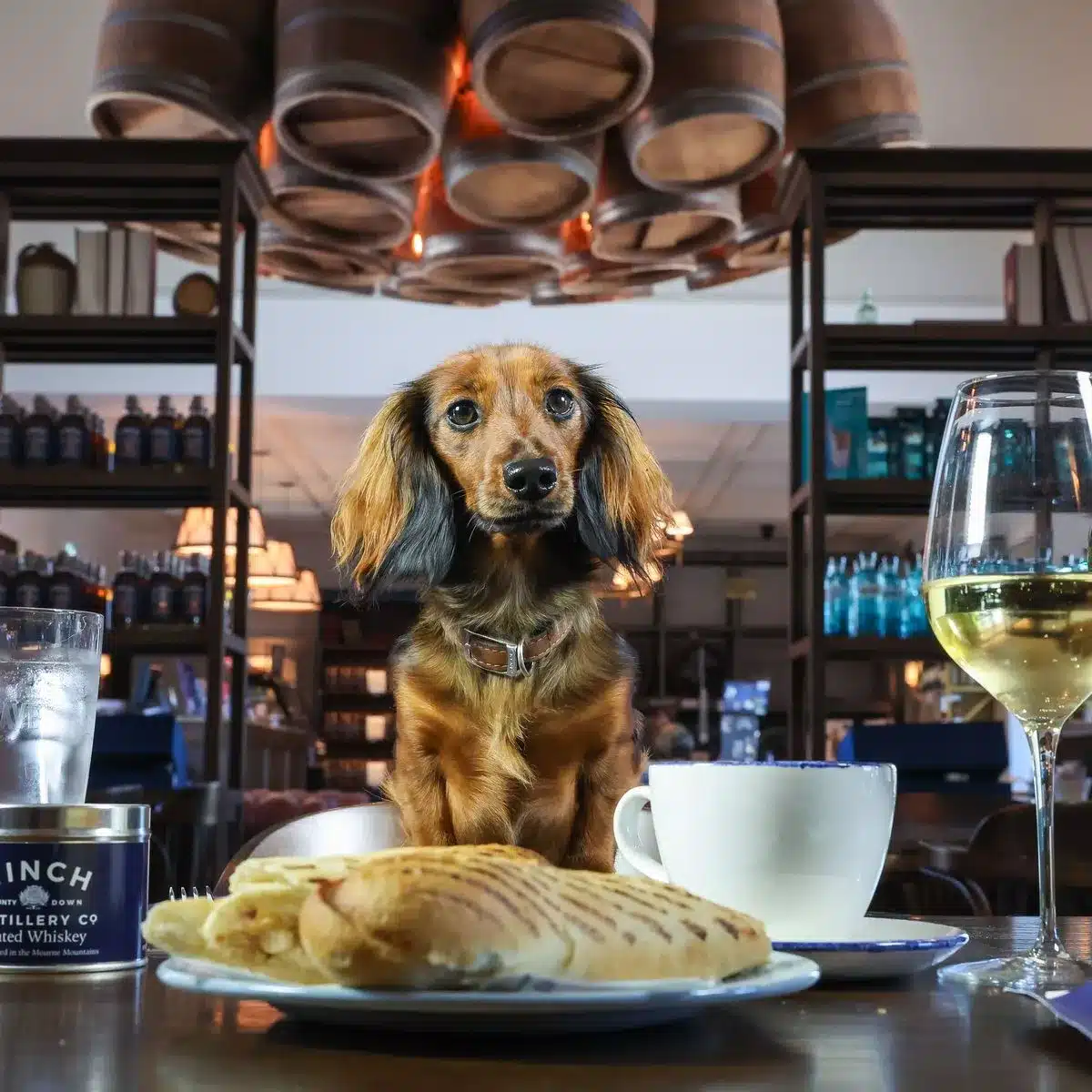 Hinch Distillery has a dedicated dog-friendly cafe where guests can relax with their pets.