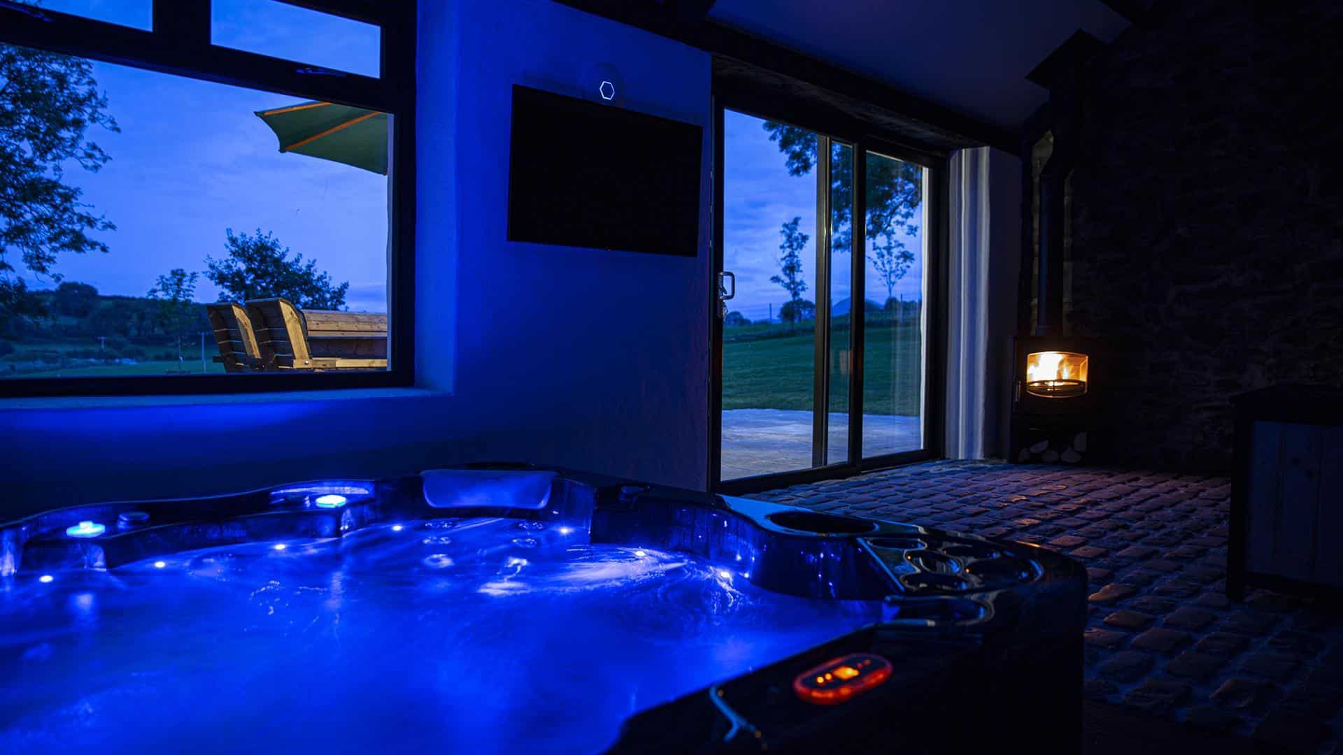 There is a private hot tub house that seats 6 people with fridge, wood burning stove and bath robes/slippers provided. Sliding glass doors open out to a patio with outside seating and large lawn. A fully equipped play park will keep the kids entertained while you enjoy a BBQ looking out over the spectacular views or toast marshmallows over the fire pit.